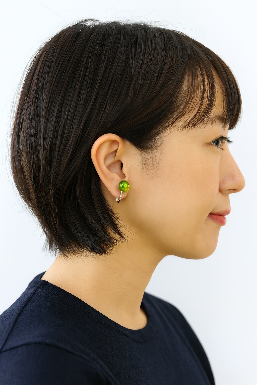 ・瑞々しい透明感のあるグリーンアンバーが耳元を明るく演出
