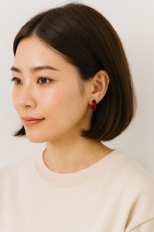 約2.0mmサイズの琥珀は、光を受けるたびに澄んだ赤色の輝きを放ち、耳元を上品に彩ります。