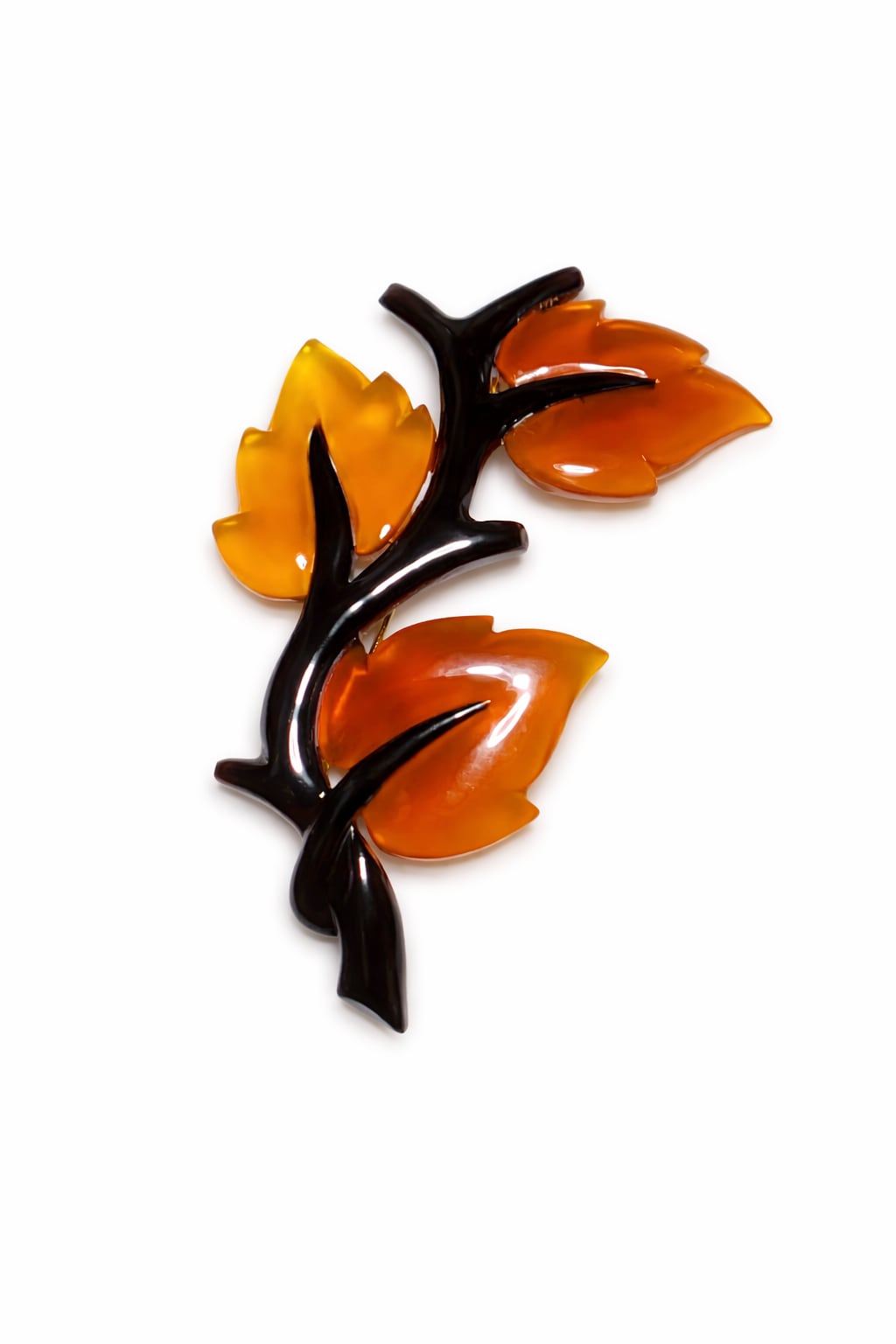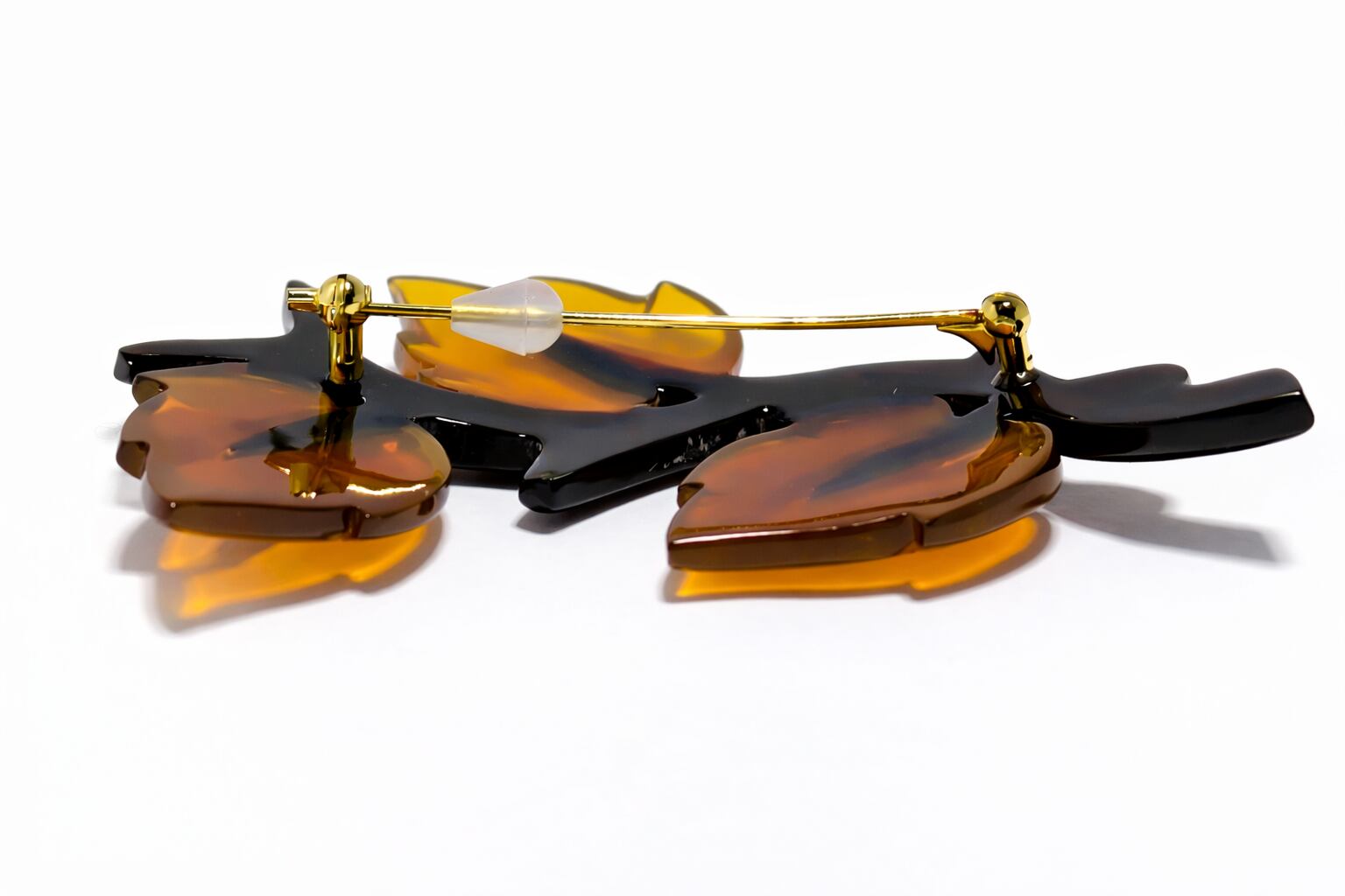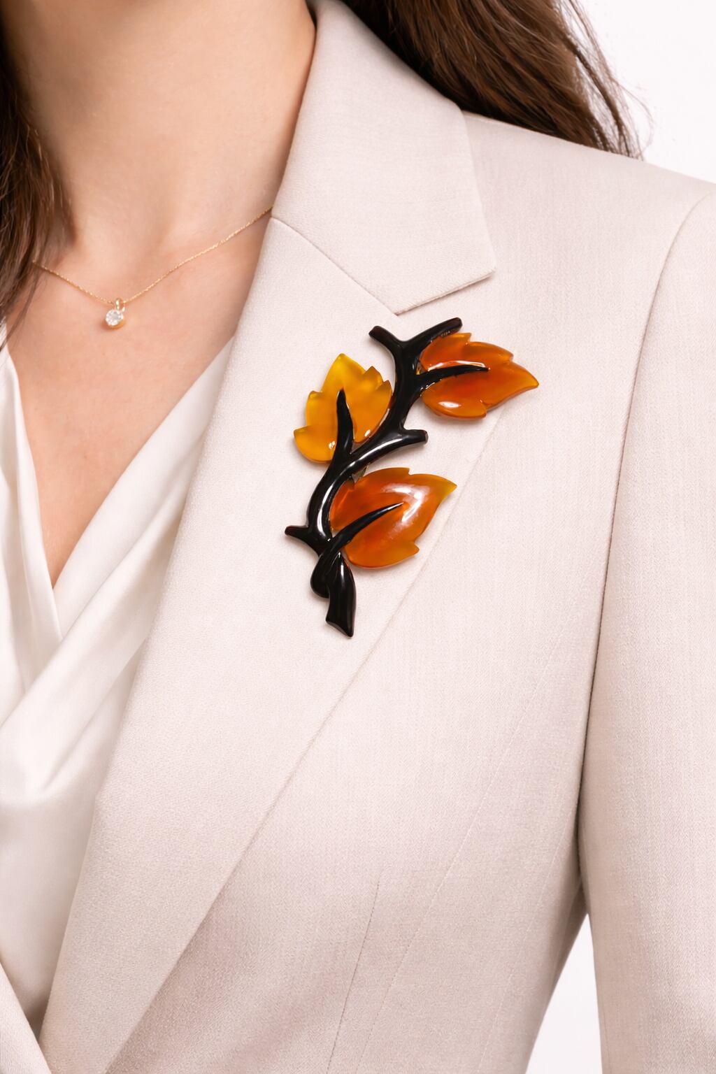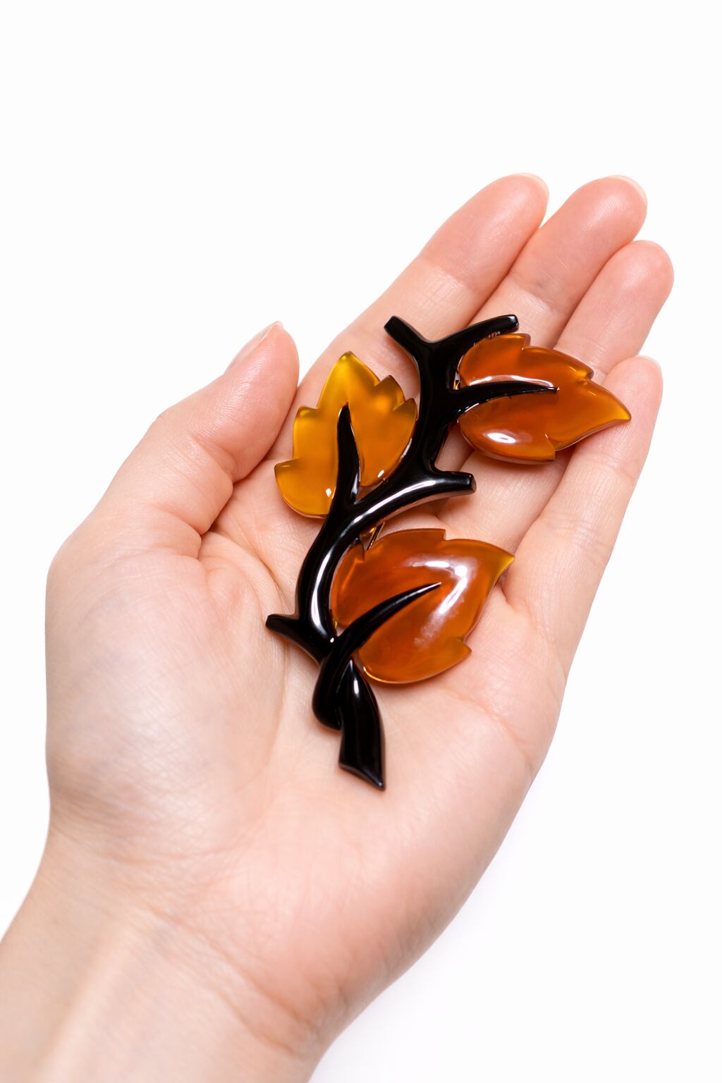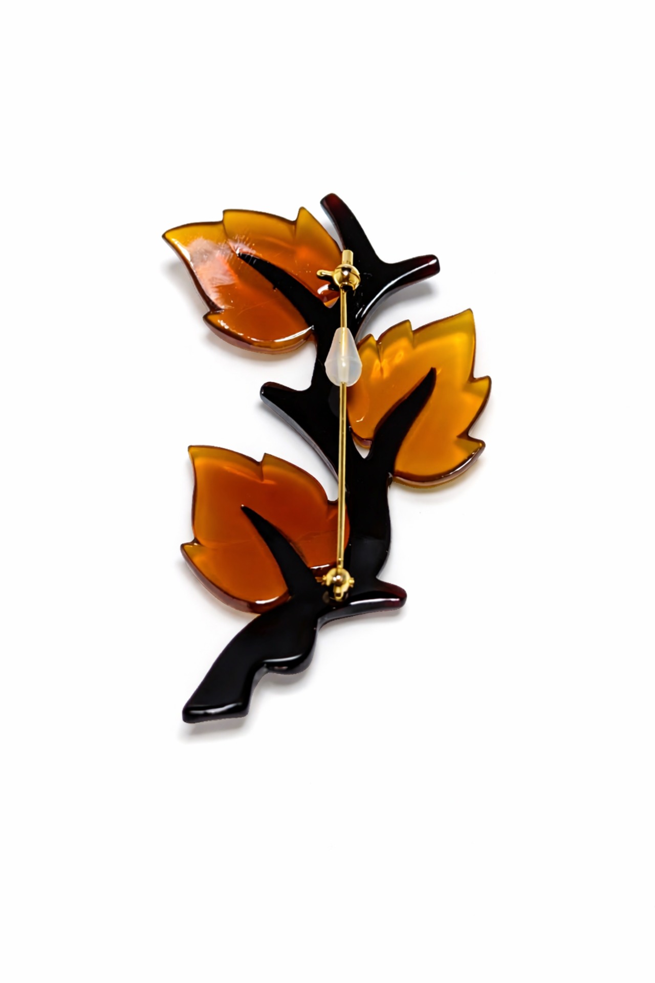 白甲を使用した、艶やかなべっ甲ブローチです。葉モチーフの上品なデザインで、軽く着け心地の良さが魅力です。