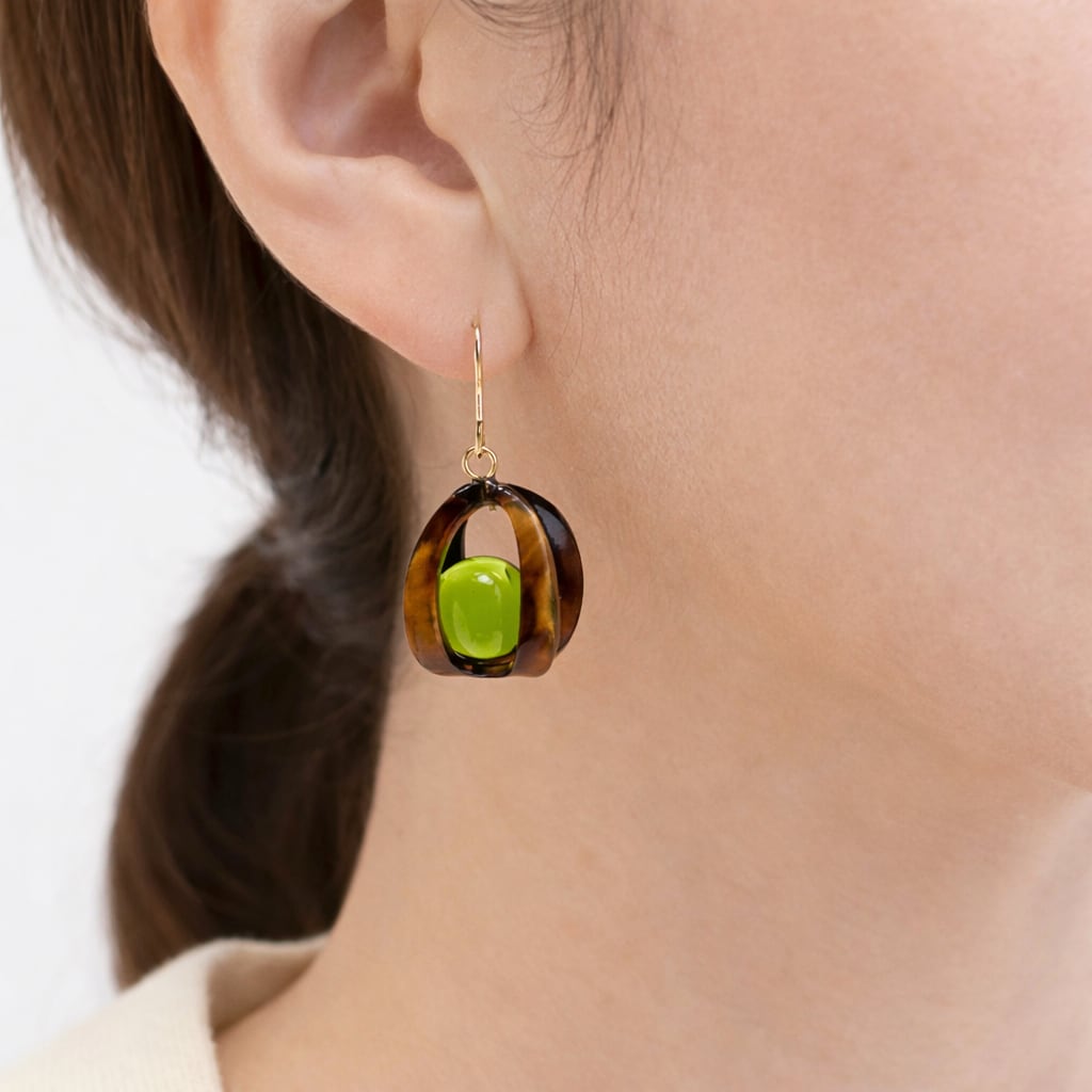 べっ甲枠 グリーンアンバー /コパル ピアス|琥珀の透明感を楽しむ大人のピアス